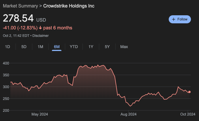 CrowdStrike shares lost 50% of their value during the incident in 2024.